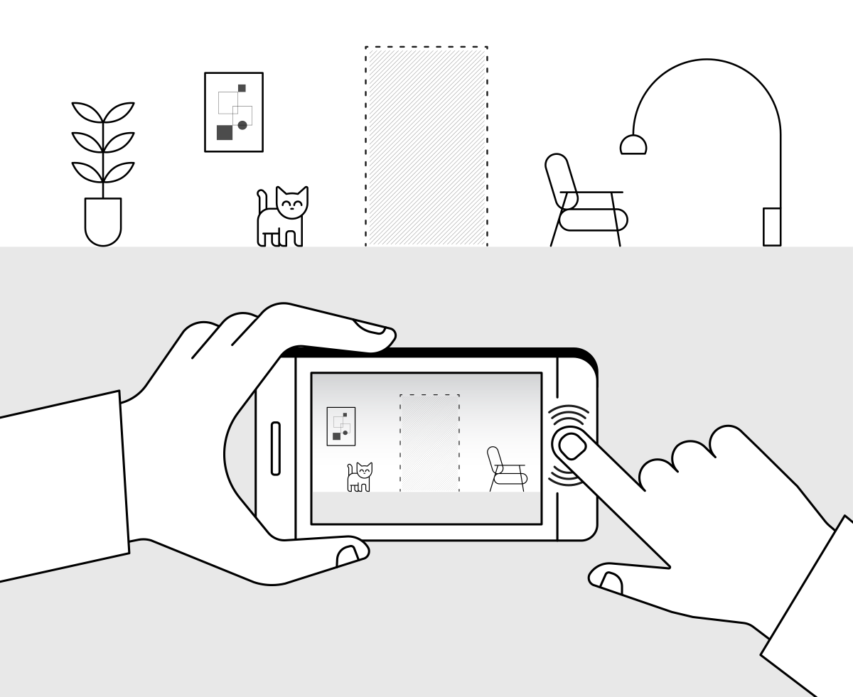 Umrahmen Sie die Wand, an der Sie Homelift installieren möchten, und machen Sie ein horizontales Foto, das der Größe einer Tür entspricht. Speichern Sie die Aufnahme, bevor Sie fortfahren.
